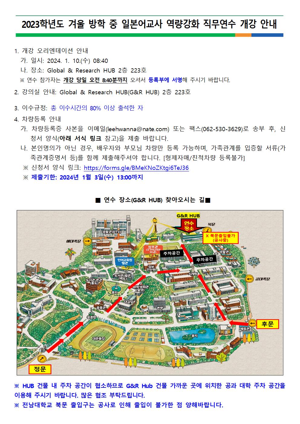 게시판 언어교육원 소개 외국어강좌 한국어강좌 특별강좌 강좌접수 게시판 영어학습센터 공지사항 공지사항 강좌소식 Q & A 특강제안하기 채용공지 영문교정 게시판 공유하기 복사 공지사항 2023학년도 겨울방학 중 일본어교사 역량강화 직무연수 개강안내 작성자 관리자2(lec) 작성일 2023-12-29 조회 1220 첨부파일 #1 일본어교사직무연수 개강안내문001.jpg[ 다운로드 : 243 ] 268KB . 목록
